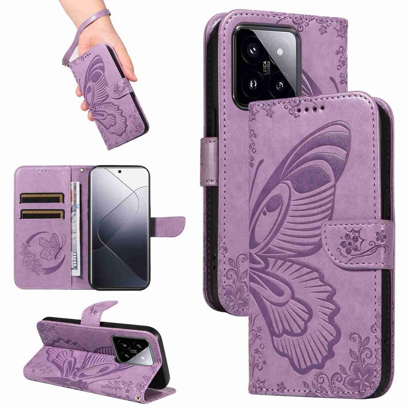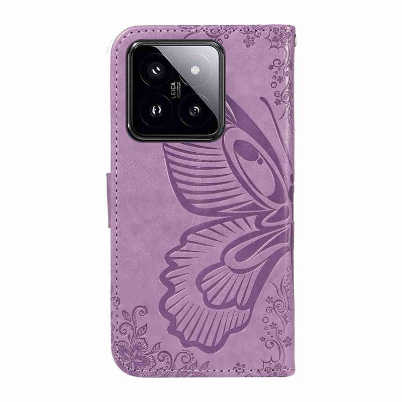 For Xiaomi 14 Pro Swallowtail Butterfly Embossed Leather Phone Case(Purple)