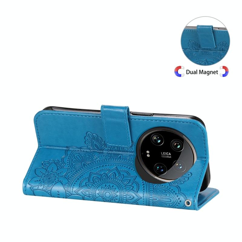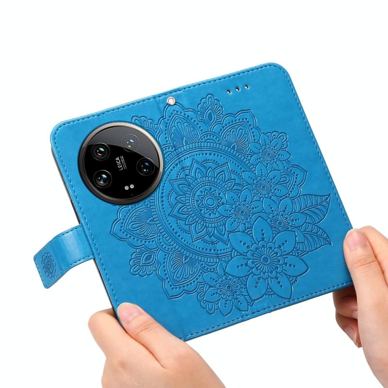 For Xiaomi 14 Ultra 7-petal Flowers Embossing Leather Phone Case(Blue)