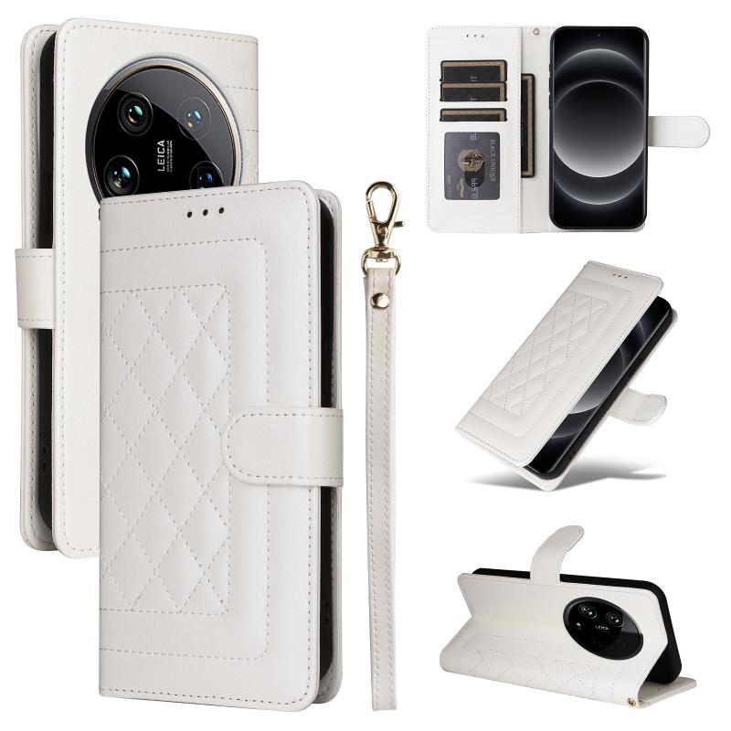 For Xiaomi 14 Ultra Diamond Lattice Leather Flip Phone Case(White)
