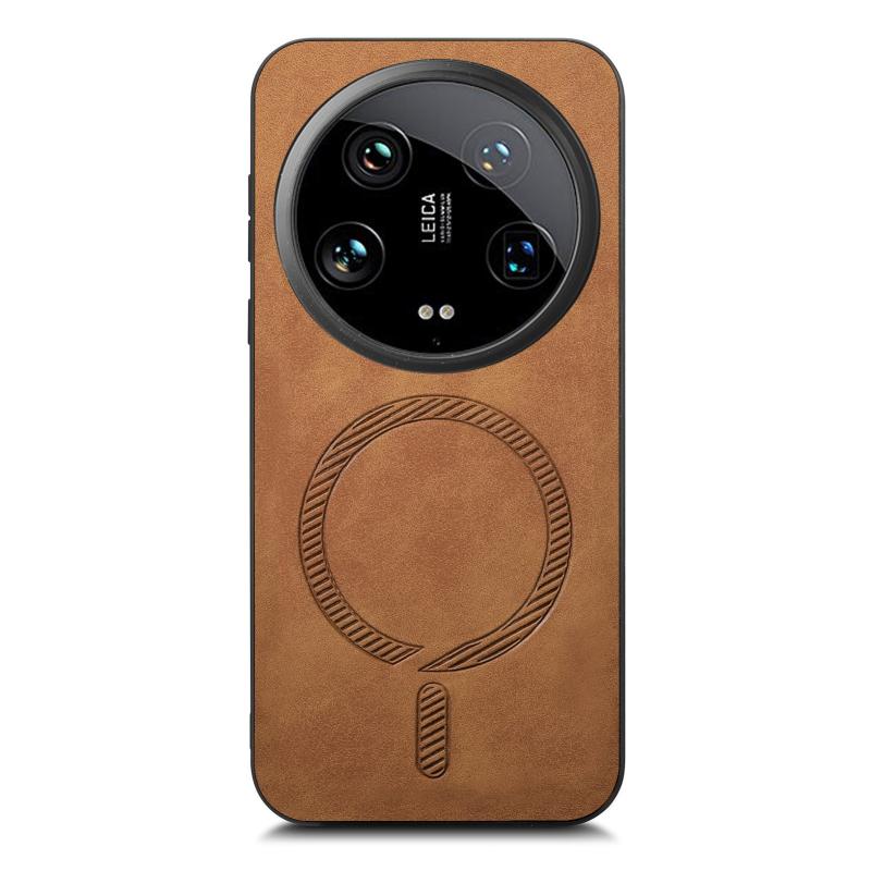 For Xiaomi 14 Ultra Solid Color Retro Magsafe PU Back Cover Phone Case(Brown)