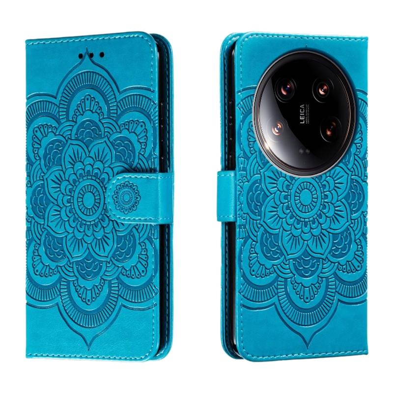 For Xiaomi 14 Ultra Sun Mandala Embossing Pattern Phone Leather Case(Blue)