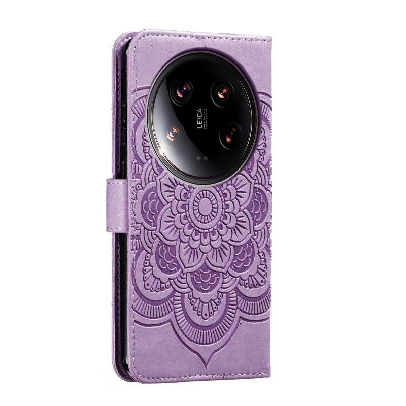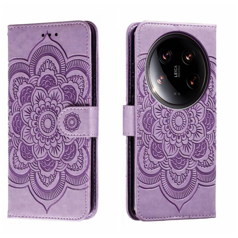 For Xiaomi 14 Ultra Sun Mandala Embossing Pattern Phone Leather Case(Purple)