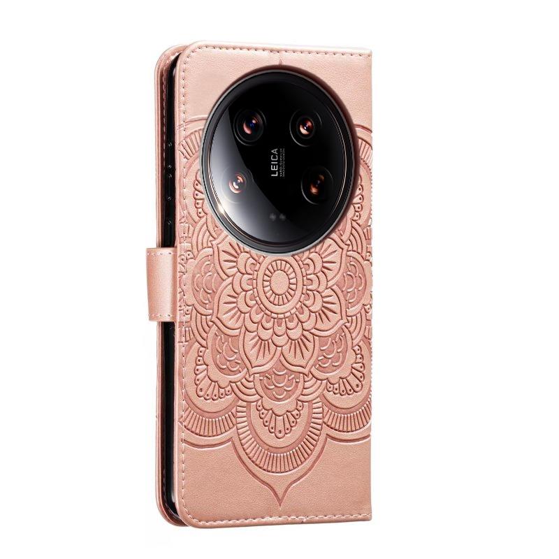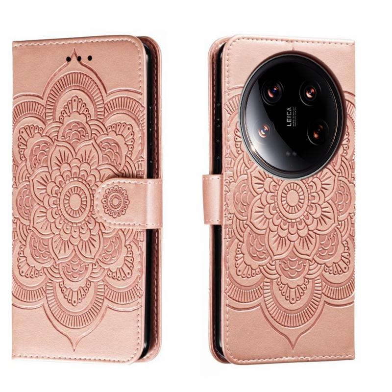 For Xiaomi 14 Ultra Sun Mandala Embossing Pattern Phone Leather Case(Rose Gold)