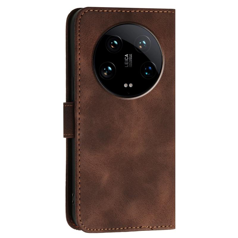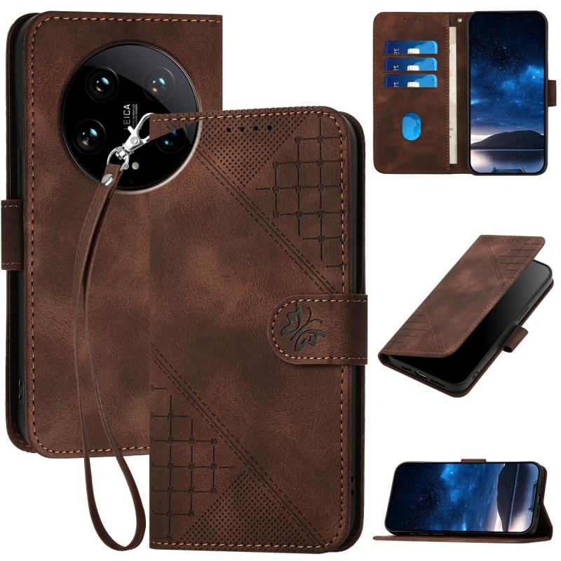 For Xiaomi 14 Ultra YX0080 Grid Butterfly Embossed Pattern Leather Phone Case with Lanyard(Coffee)