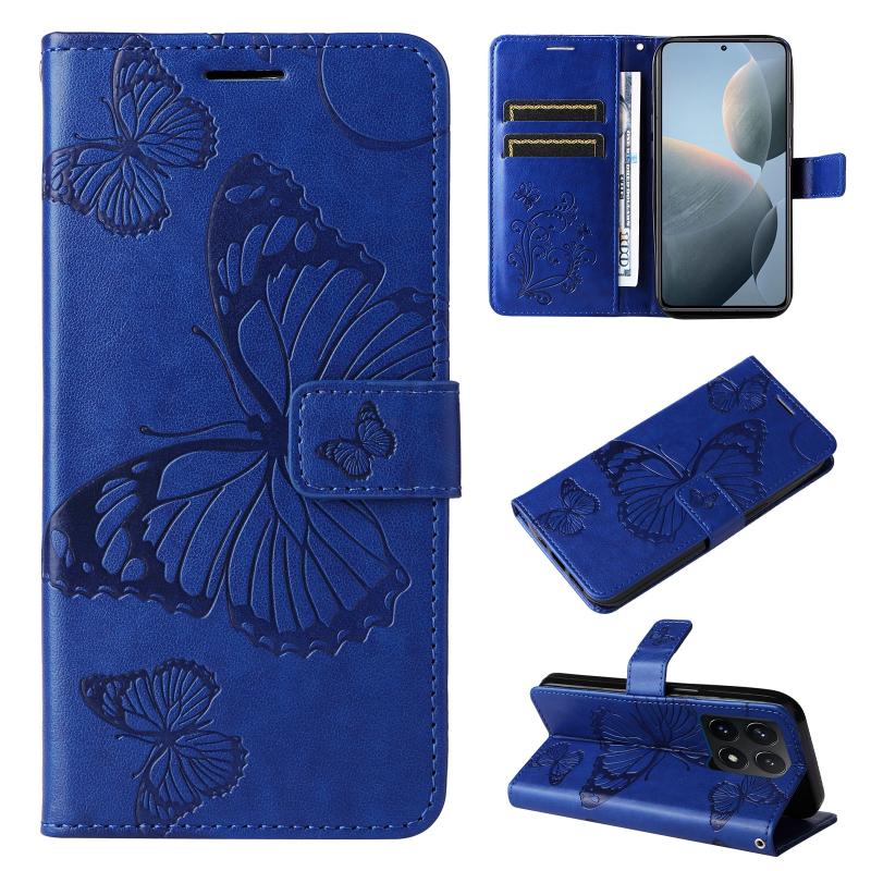 For Xiaomi 14T 3D Butterfly Embossed Pattern Flip Leather Phone Case(Blue)