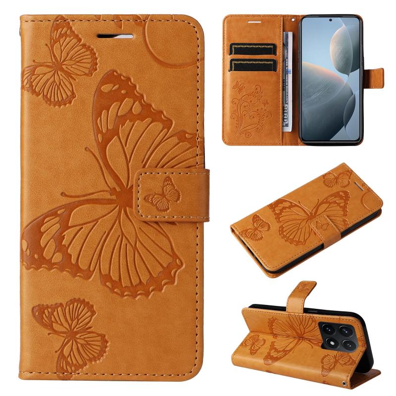 For Xiaomi 14T 3D Butterfly Embossed Pattern Flip Leather Phone Case(Yellow)