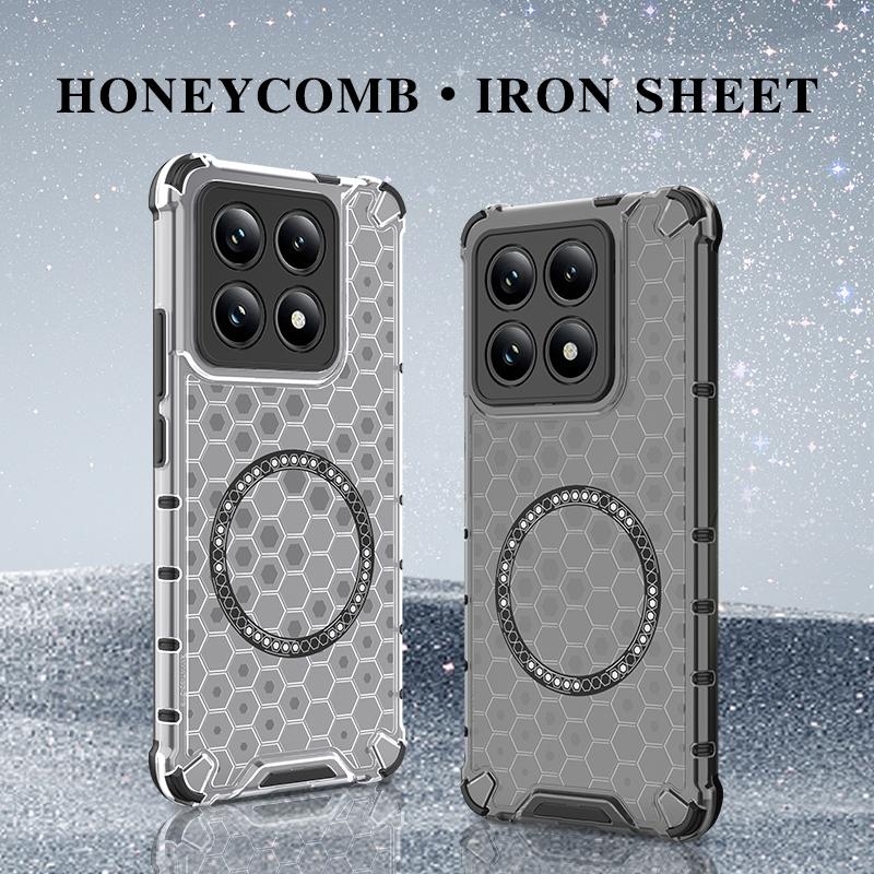 For Xiaomi 14T 5G Global Honeycomb Magnetic Ring Shockproof Phone Case(Black)
