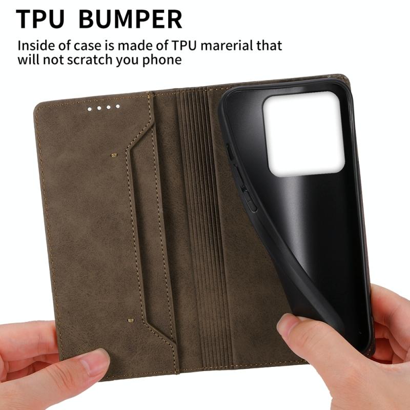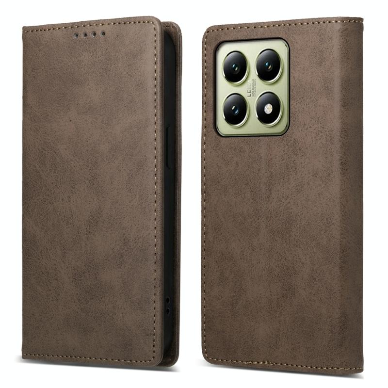 For Xiaomi 14T Business Solid Color Magnetic RFID Leather Phone Case(Brown)