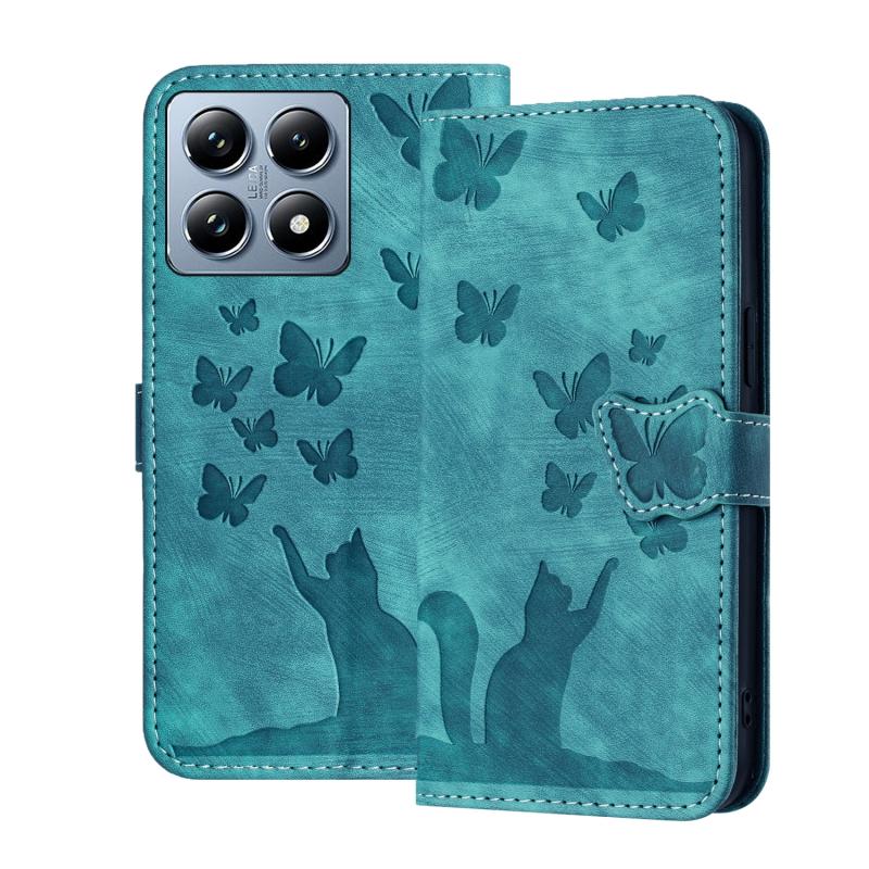 For Xiaomi 14T Butterfly Cat Embossing Flip Leather Phone Case(Wathet)