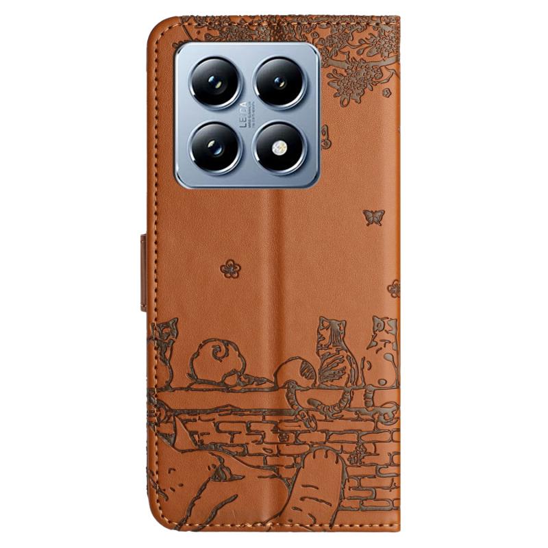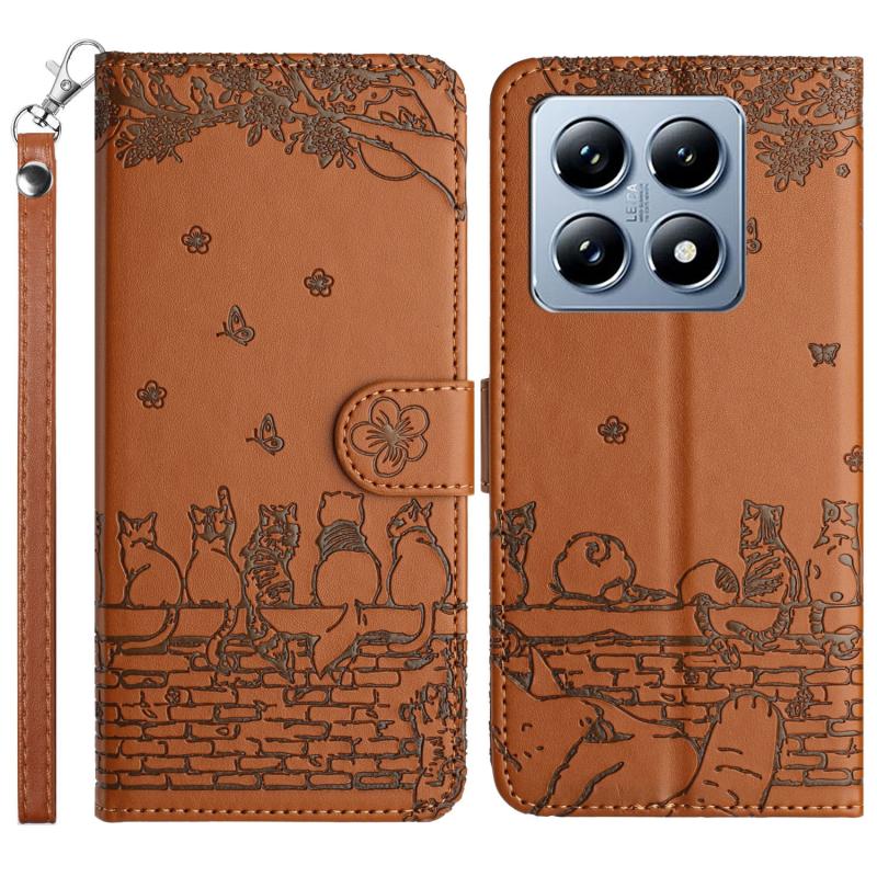 For Xiaomi 14T Cat Embossing Pattern Leather Phone Case with Lanyard(Brown)