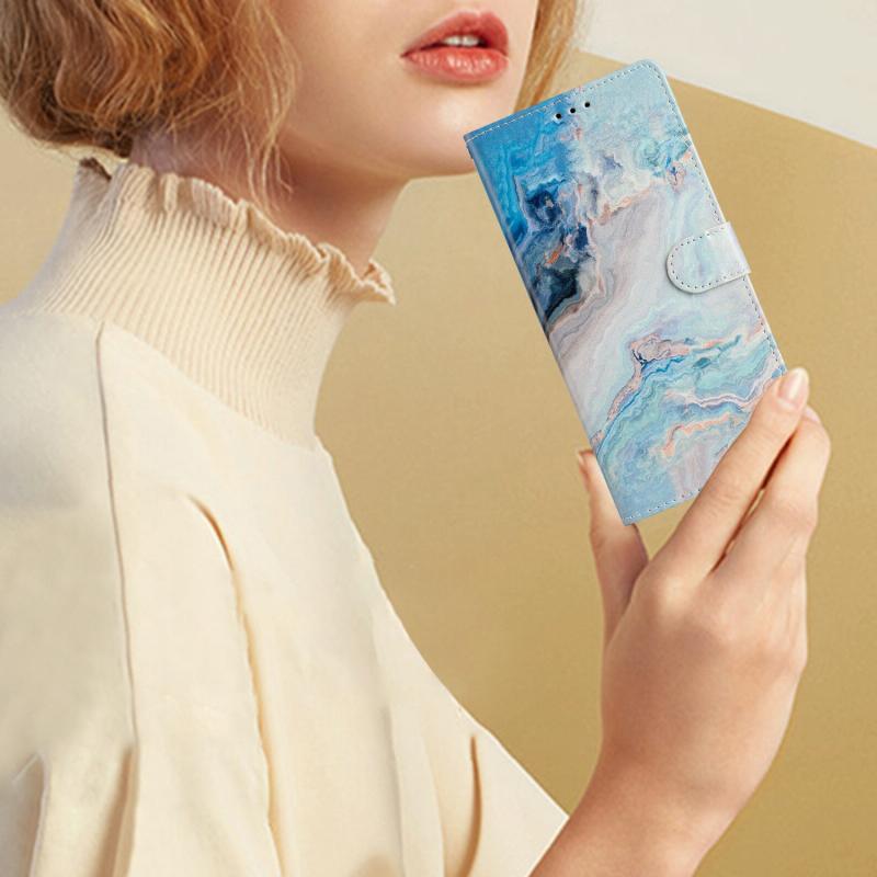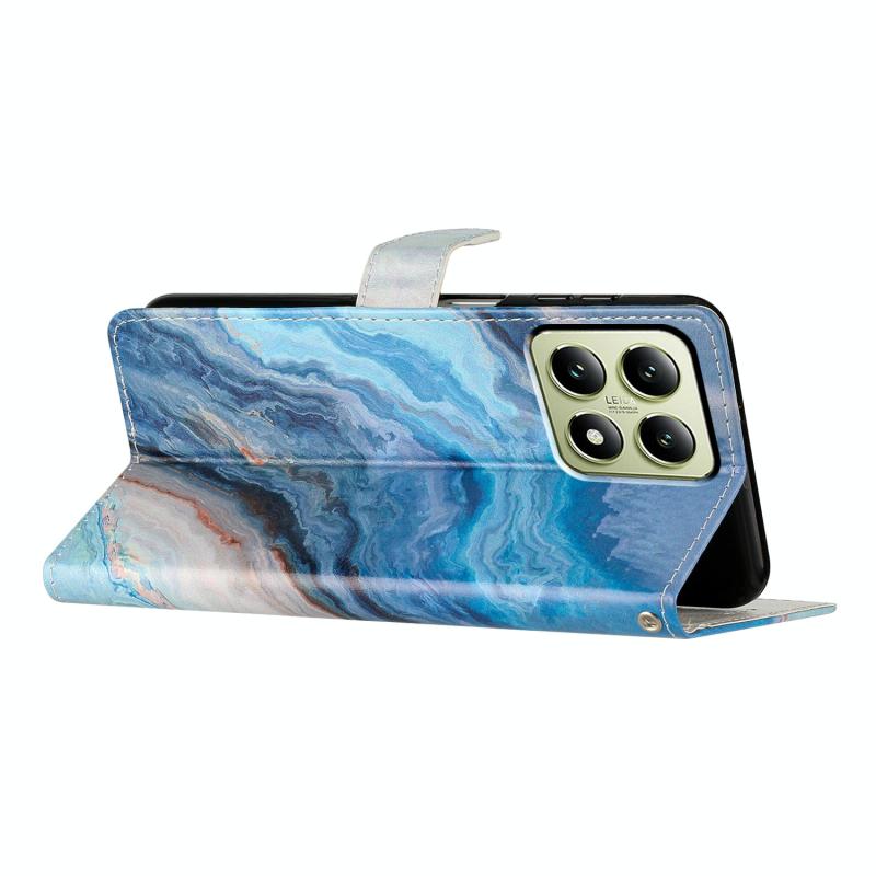 For Xiaomi 14T Colored Drawing Leather Phone Case(Blue Marble)