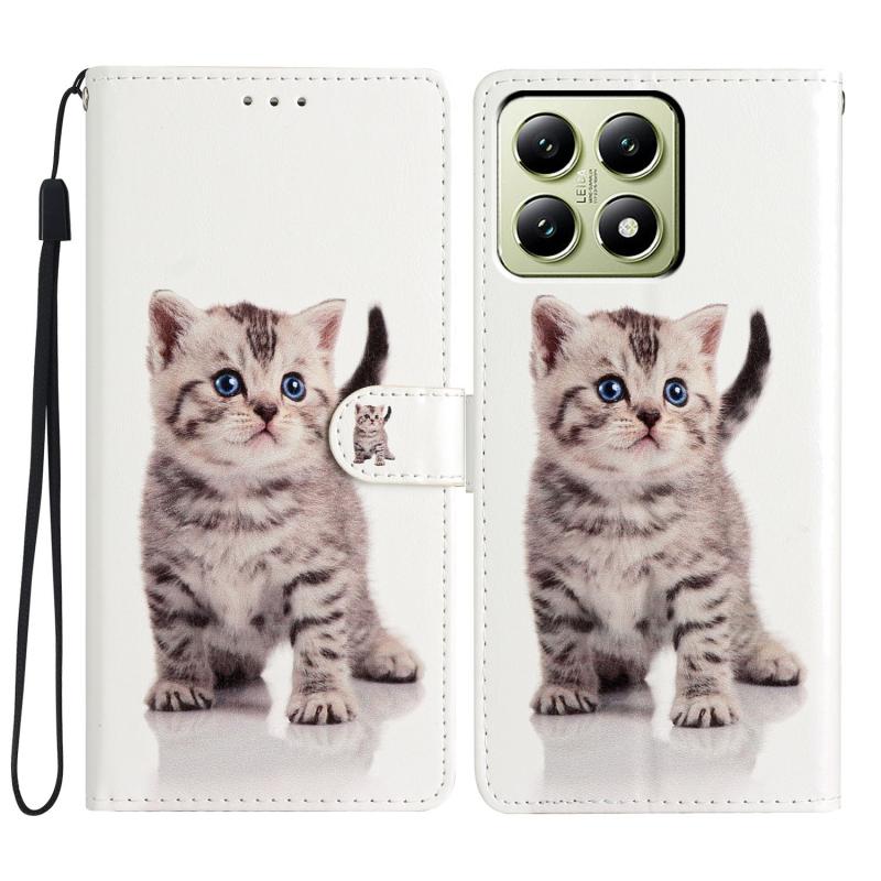 For Xiaomi 14T Colored Drawing Leather Phone Case(Little Tabby Cat)