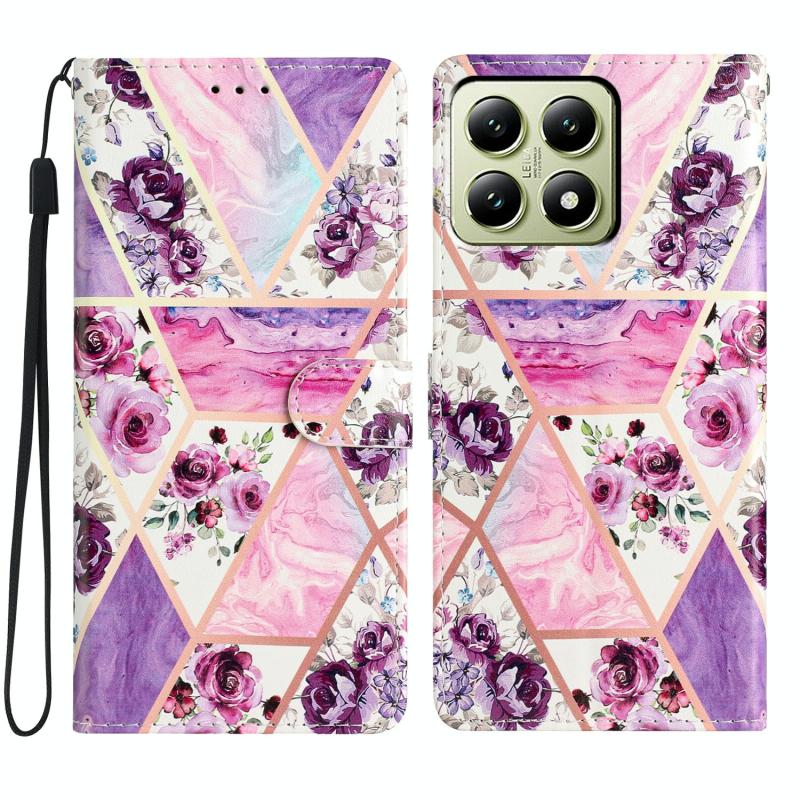 For Xiaomi 14T Colored Drawing Leather Phone Case(Purple Marble)