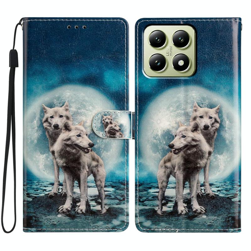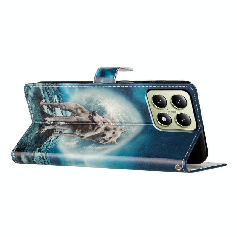 For Xiaomi 14T Colored Drawing Leather Phone Case(Twin Wolves)
