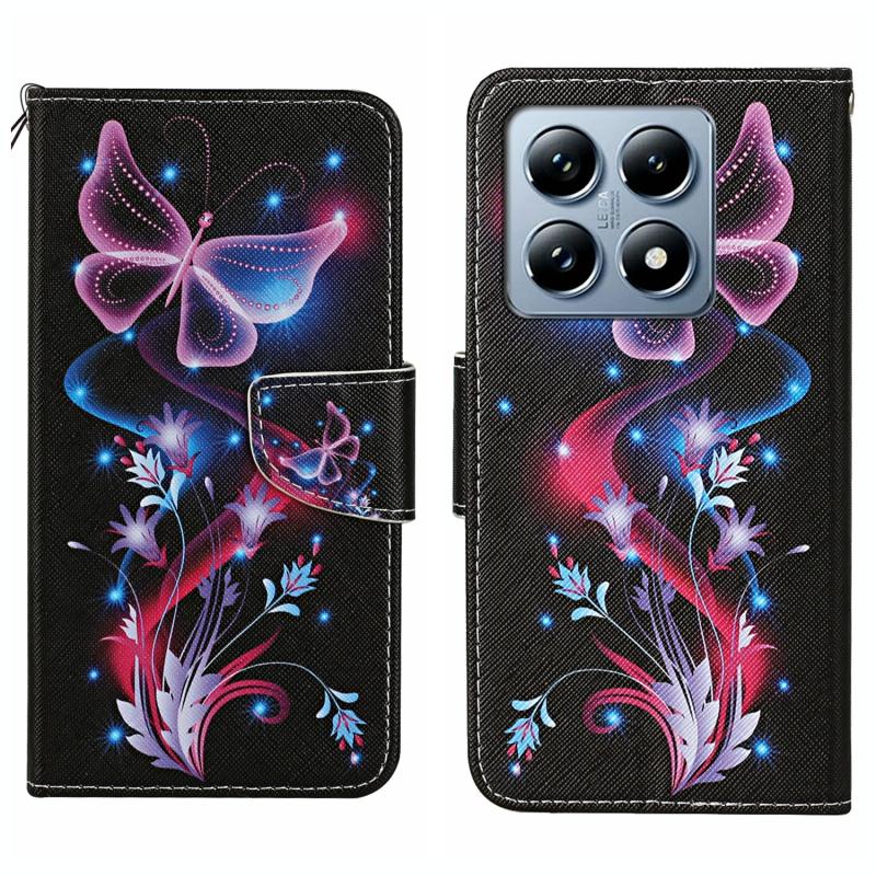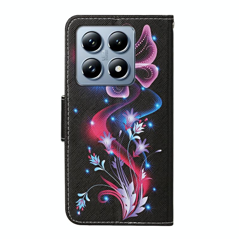 For Xiaomi 14T Colored Drawing Pattern Leather Phone Case(Fluorescent Butterfly)