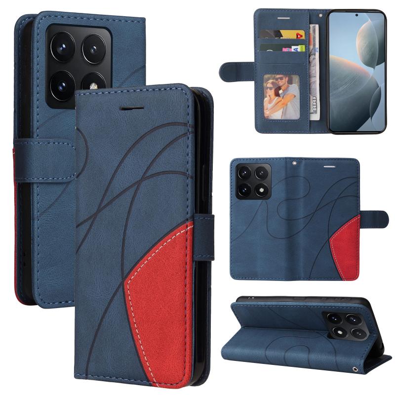 For Xiaomi 14T Dual-color Splicing Flip Leather Phone Case(Blue)