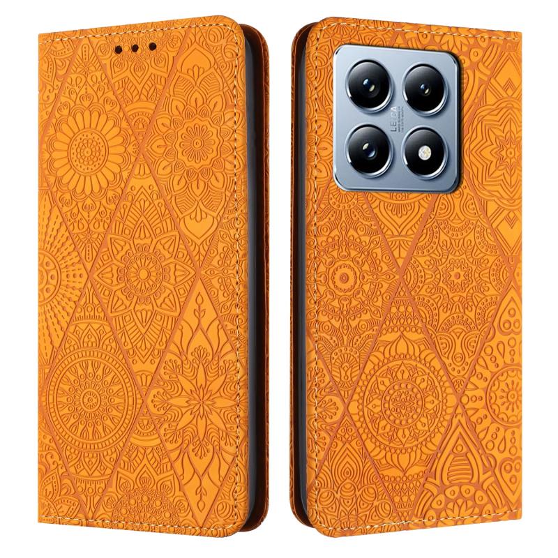 For Xiaomi 14T Ethnic Embossed Adsorption Leather Phone Case(Yellow)