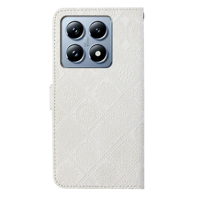 For Xiaomi 14T Ethnic Style Embossed Pattern Leather Phone Case(White)