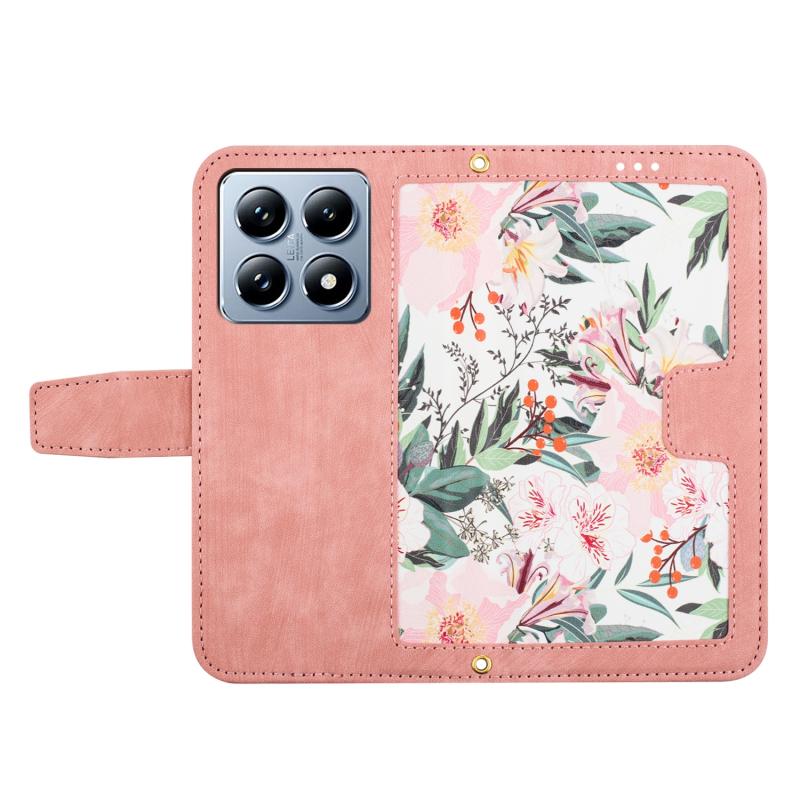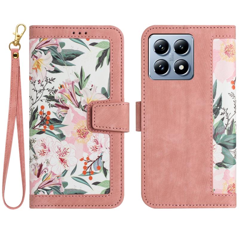 For Xiaomi 14T Floral Pattern Leather Phone Case with Lanyard(Pink)