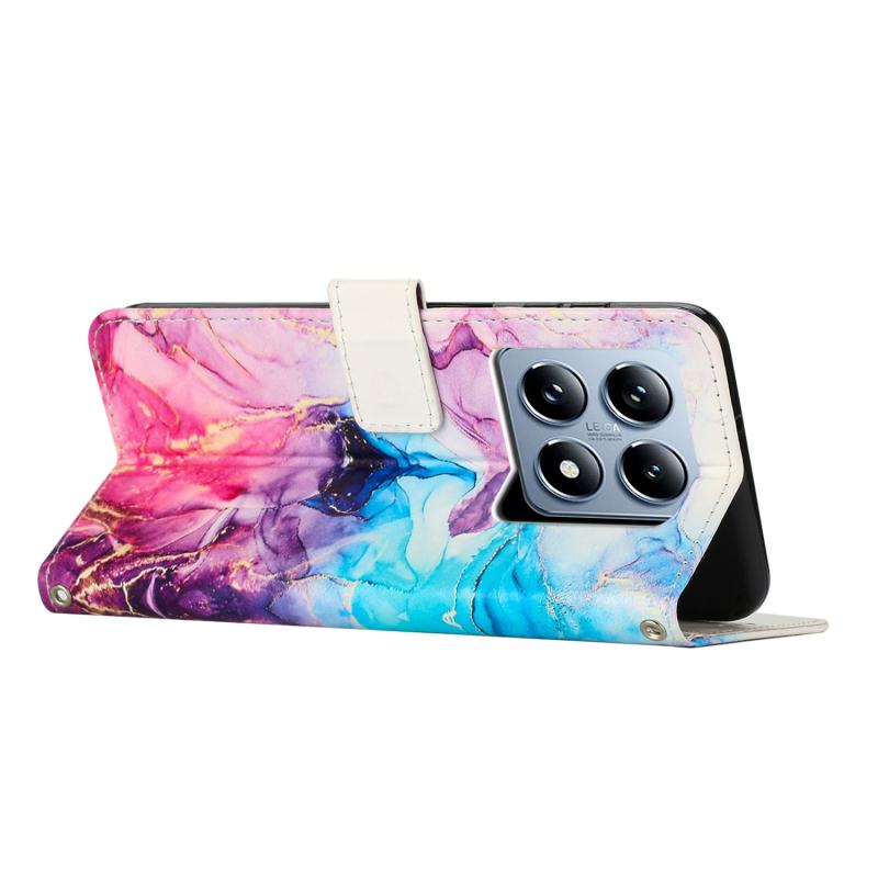 For Xiaomi 14T Global Painted Marble Pattern Leather Phone Case(Pink Purple)