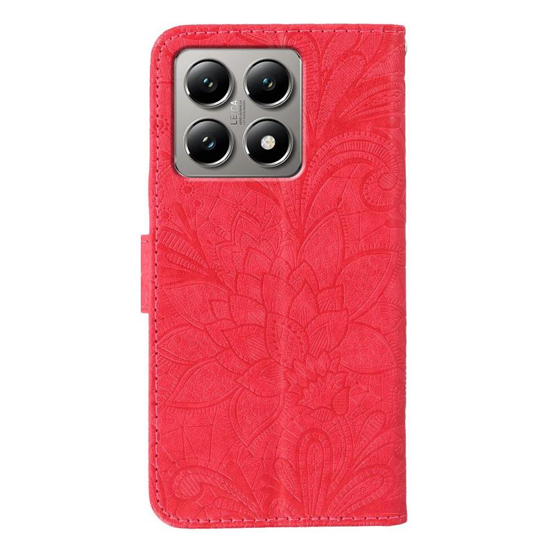 For Xiaomi 14T Lace Flower Embossing Flip Leather Phone Case(Red)