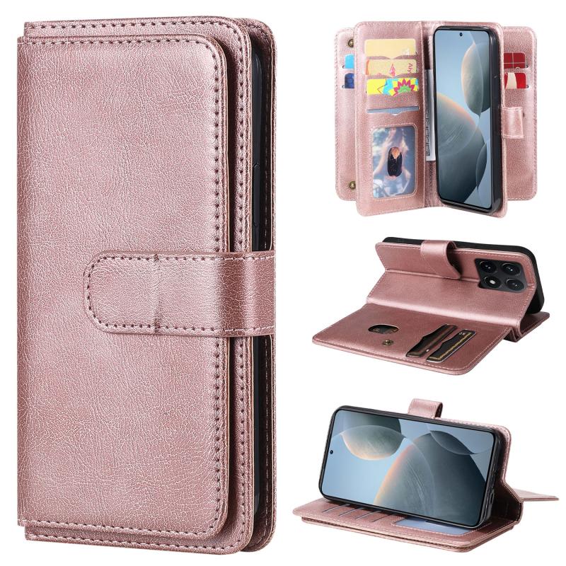 For Xiaomi 14T Multi-Function Wallet 10 Card Slots Leather Phone Case(Rose Gold)