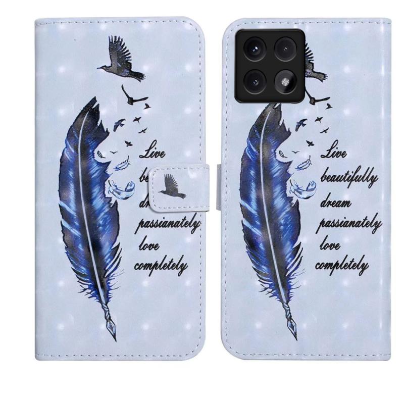 For Xiaomi 14T Oil Embossed 3D Drawing Leather Phone Case(Blue Feather)