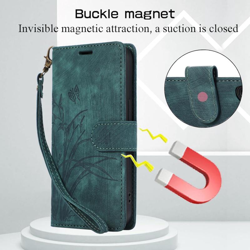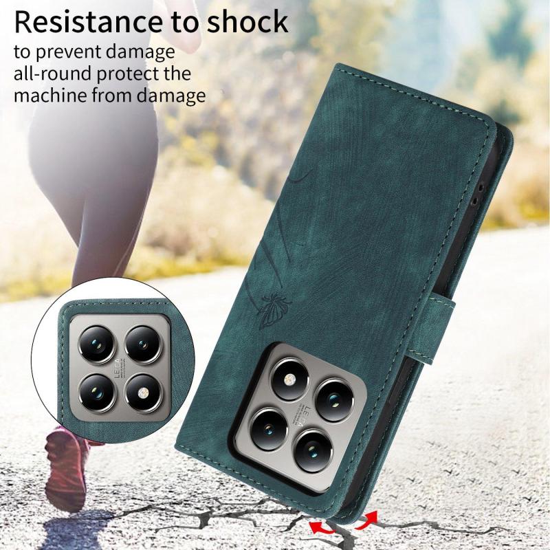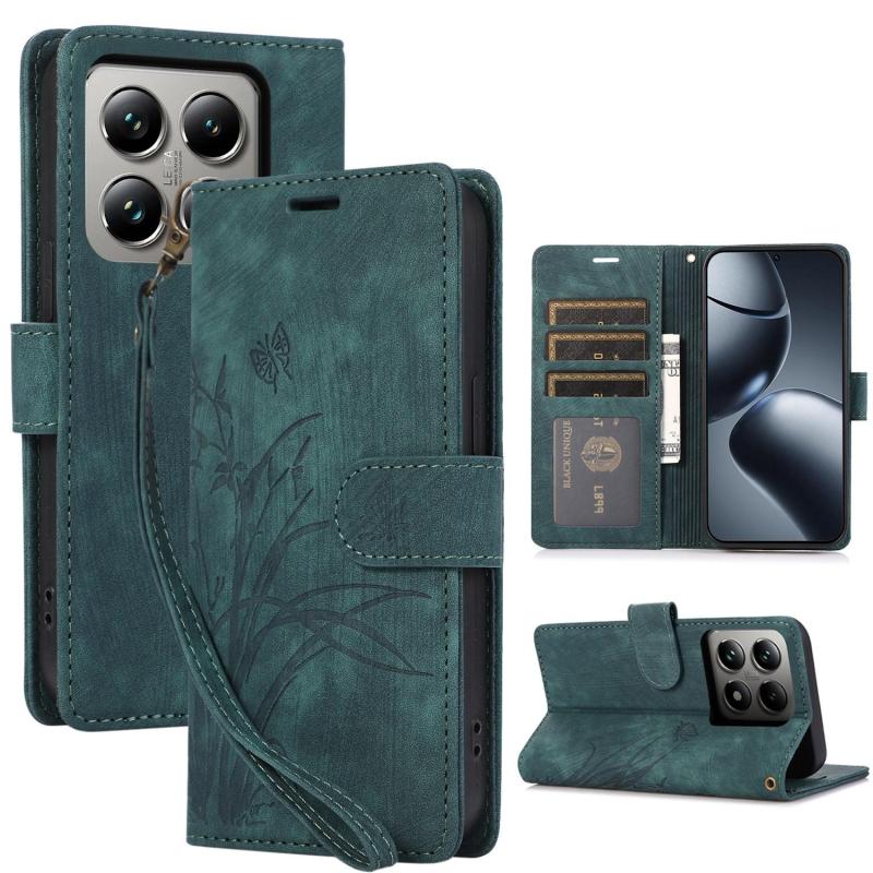 For Xiaomi 14T Orchid Butterfly Embossed Leather Phone Case(Green)