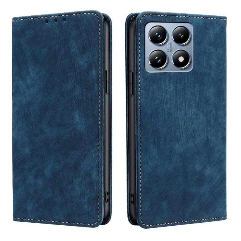 For Xiaomi 14T Pro 5G RFID Anti-theft Brush Magnetic Leather Phone Case(Blue)