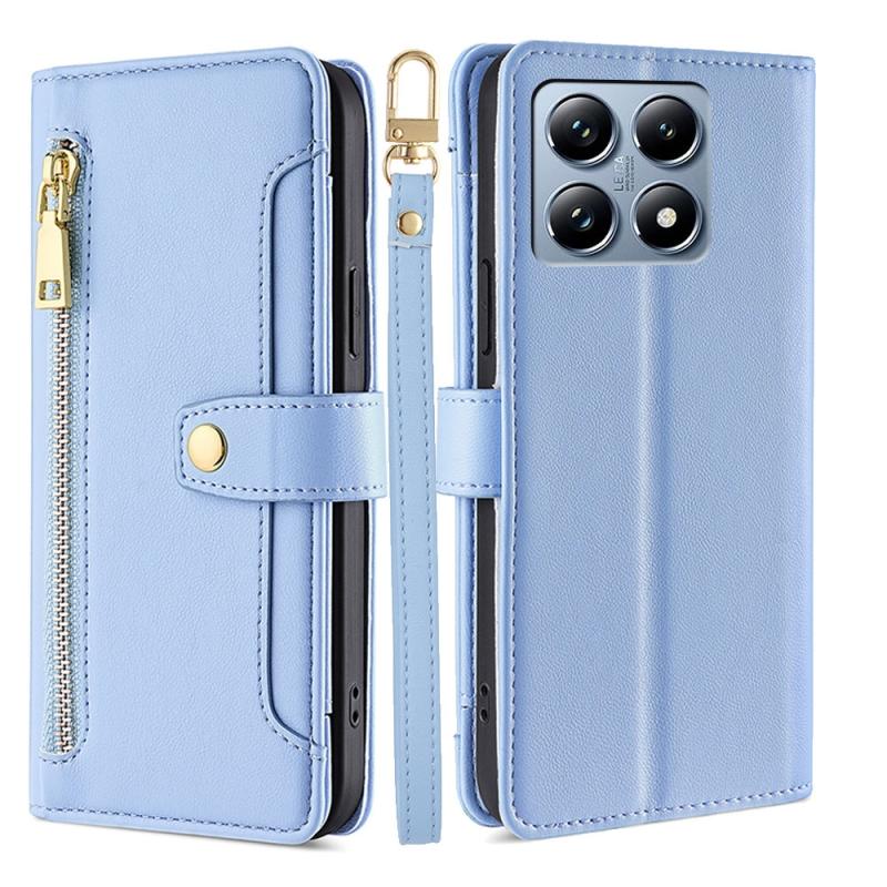 For Xiaomi 14T Pro 5G Sheep Texture Cross-body Zipper Wallet Leather Phone Case(Blue)