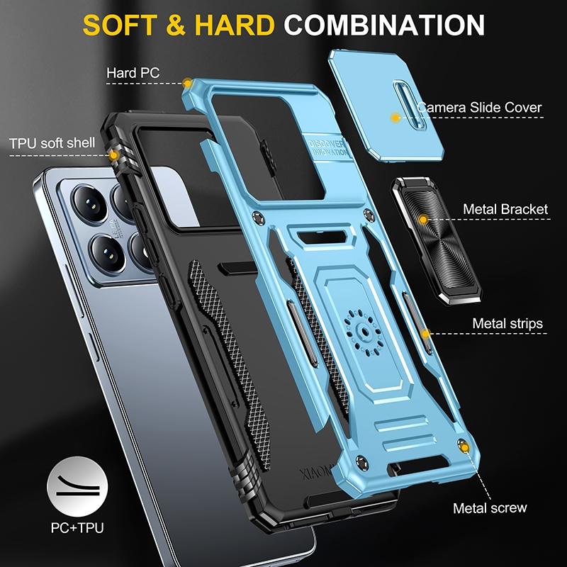 For Xiaomi 14T Pro Armor PC Hybrid TPU Camera Shield Phone Case(Light Blue)