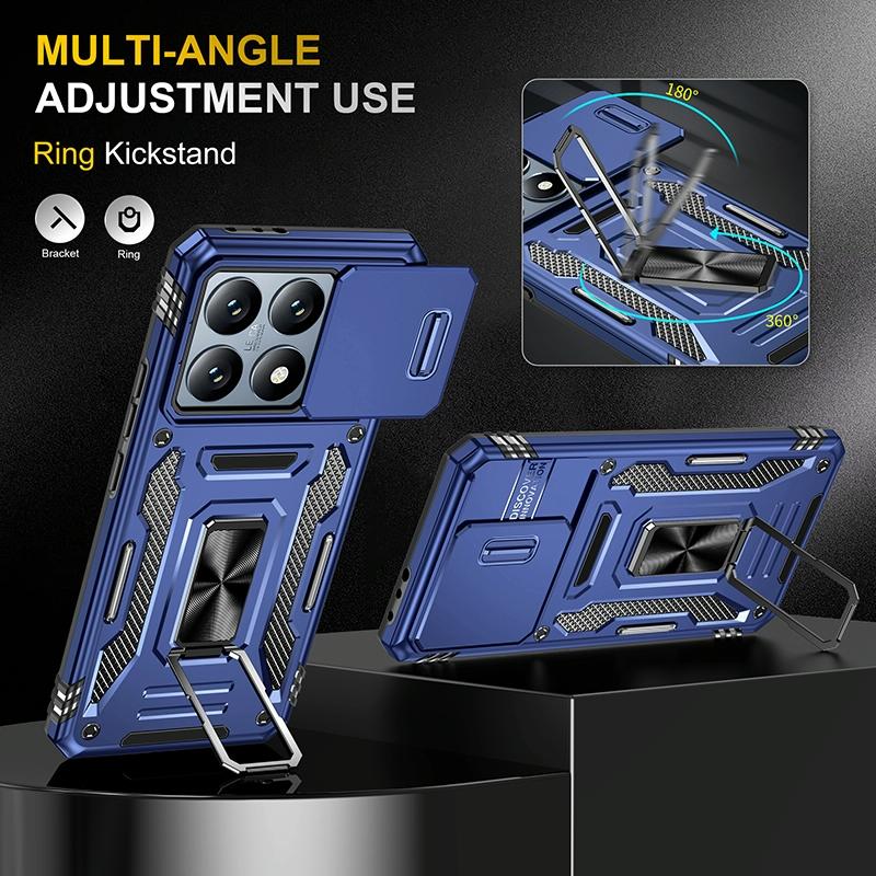 For Xiaomi 14T Pro Armor PC Hybrid TPU Camera Shield Phone Case(Navy Blue)