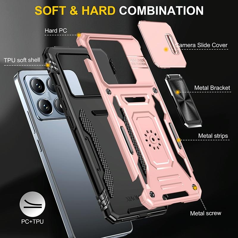 For Xiaomi 14T Pro Armor PC Hybrid TPU Camera Shield Phone Case(Rose Gold)