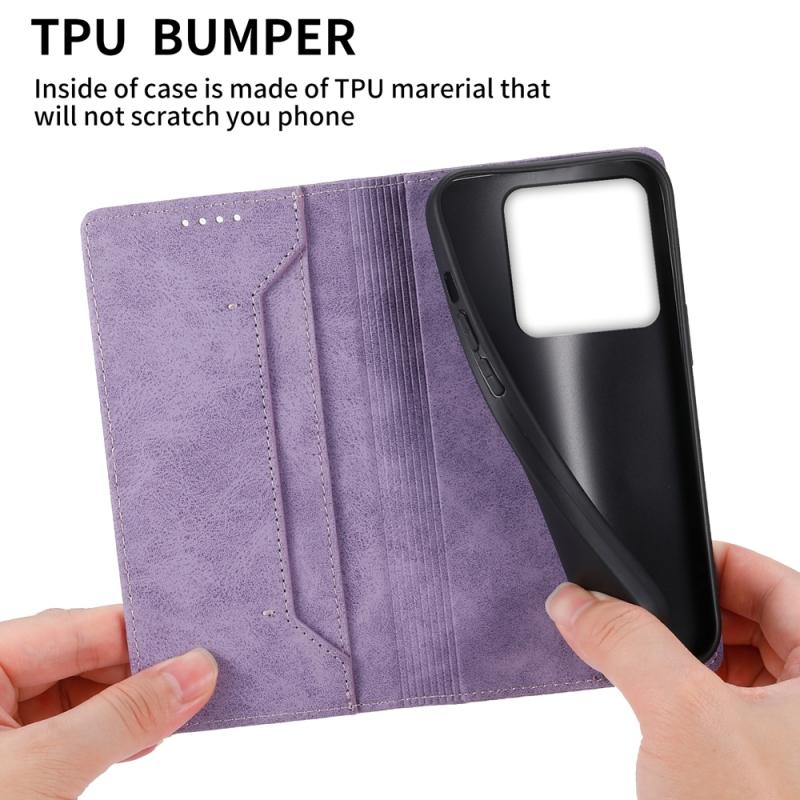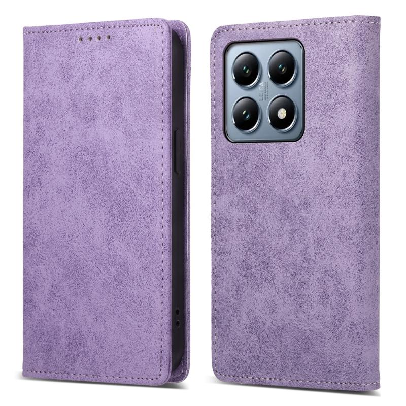 For Xiaomi 14T Pro Business Solid Color Magnetic RFID Leather Phone Case(Purple)