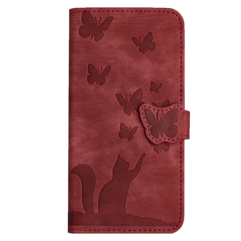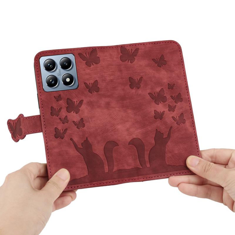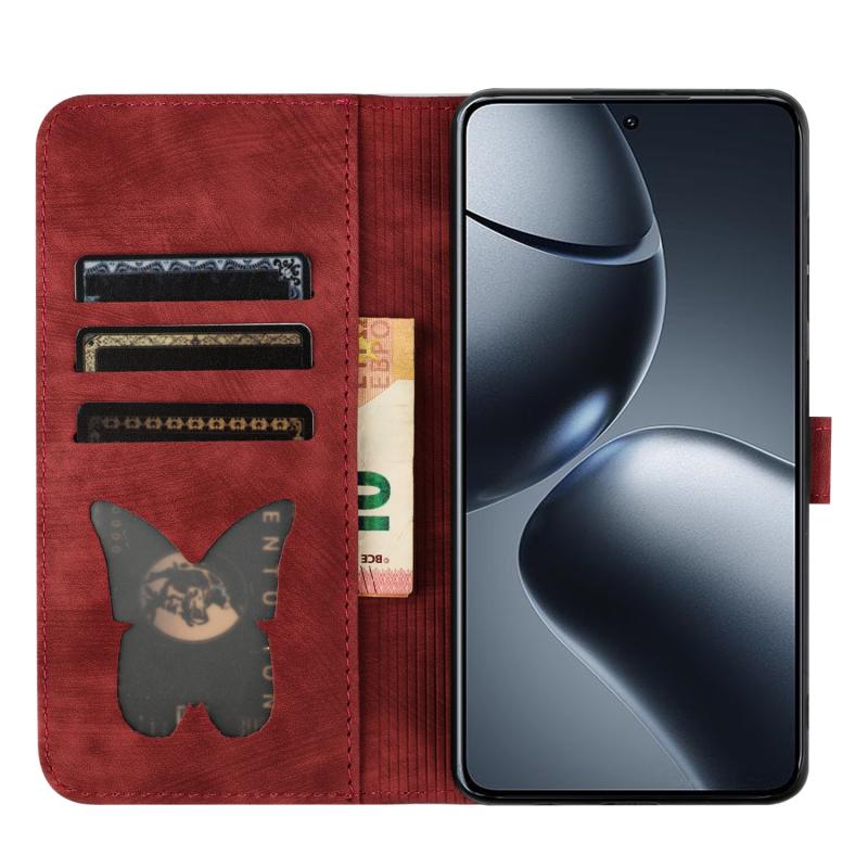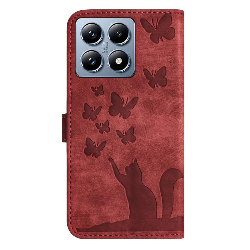 For Xiaomi 14T Pro Butterfly Cat Embossing Flip Leather Phone Case(Red)
