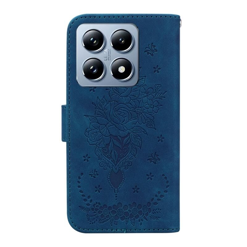 For Xiaomi 14T Pro Butterfly Rose Embossed Leather Phone Case(Blue)