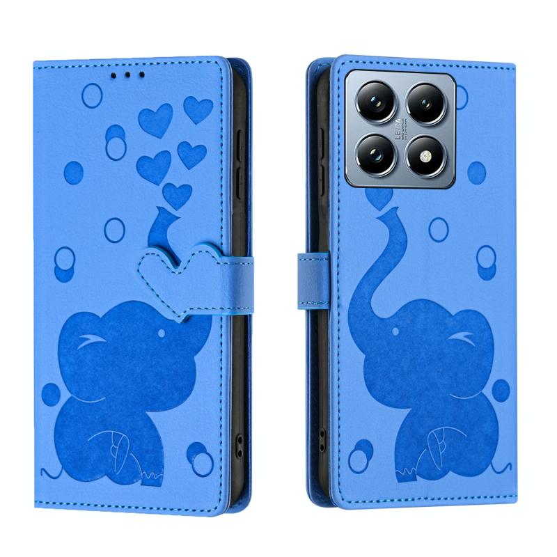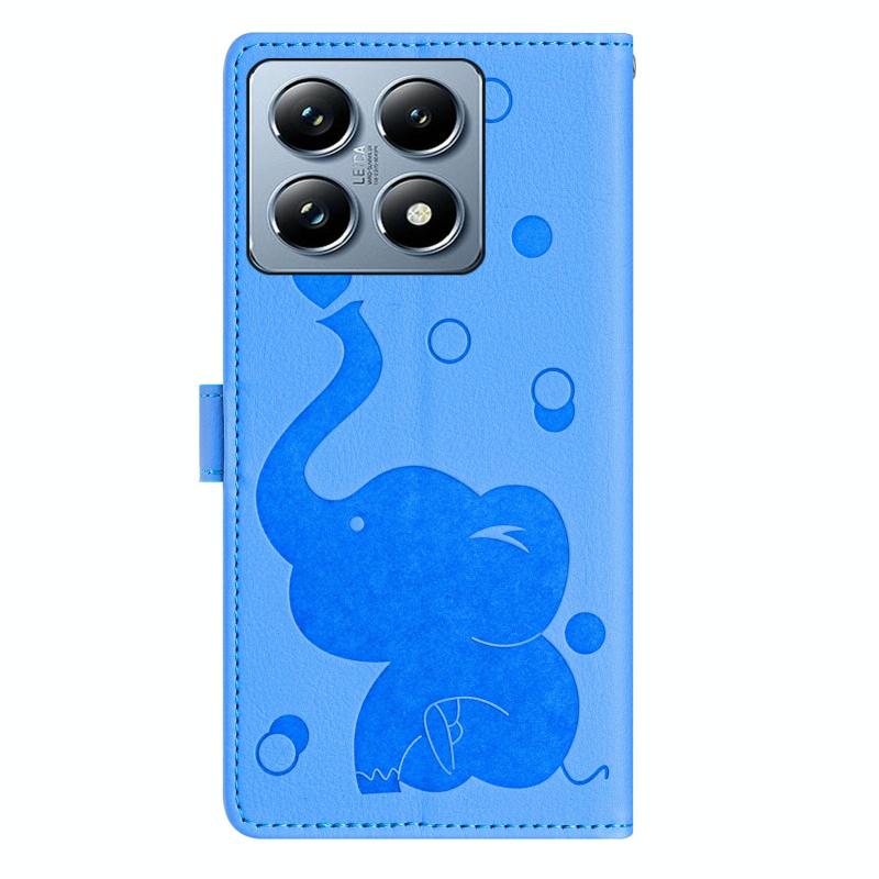 For Xiaomi 14T Pro Cartoon Elephant Embossed Leather Phone Case(Blue)