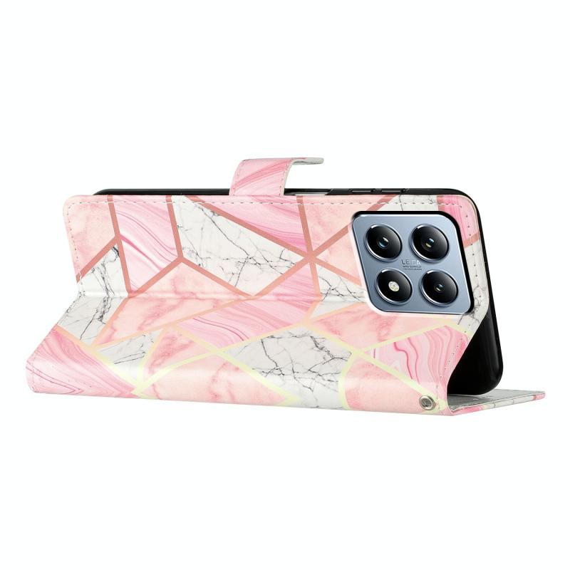 For Xiaomi 14T Pro Colored Drawing Leather Phone Case(Pink Marble)