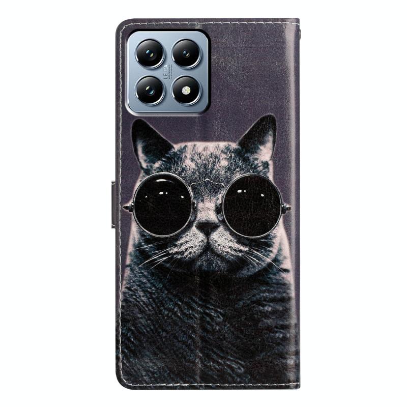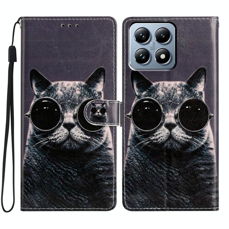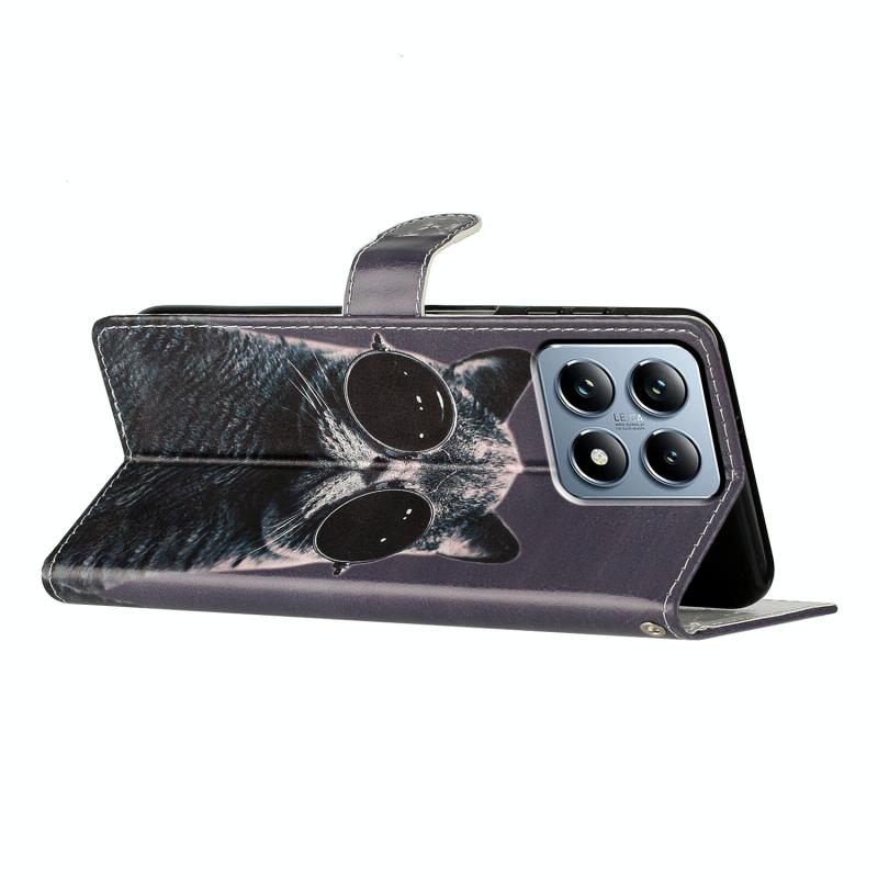 For Xiaomi 14T Pro Colored Drawing Leather Phone Case(Sunglasses Cat)