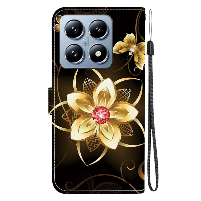For Xiaomi 14T Pro Crystal Texture Colored Drawing Leather Phone Case(Gold Flower)