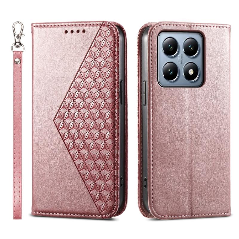 For Xiaomi 14T Pro Cubic Grid Calf Texture Magnetic Leather Phone Case(Rose Gold)