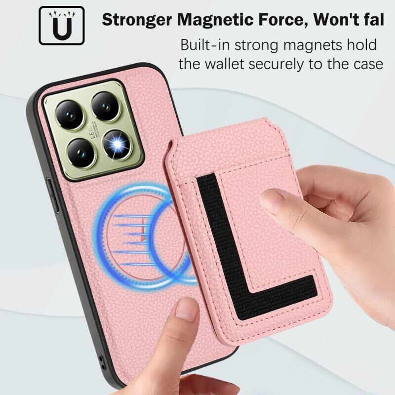 For Xiaomi 14T Pro CX01 Detachable Magsafe Magnetic Card Bag Phone Case(Pink)