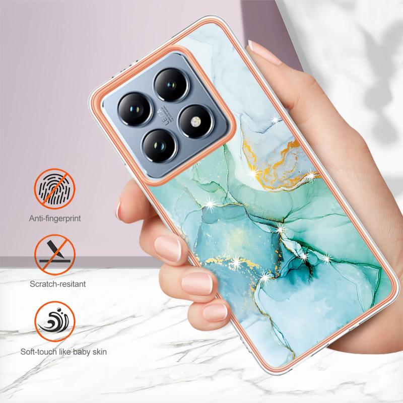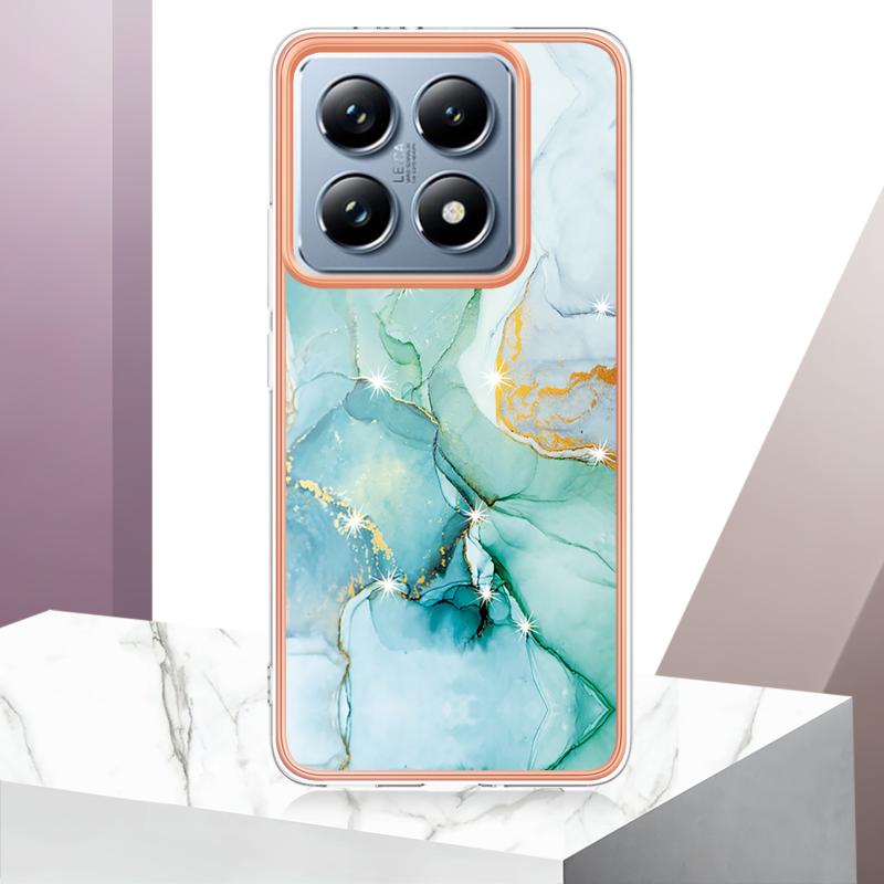 For Xiaomi 14T Pro Electroplating Marble Dual-side IMD Phone Case(Green 003)