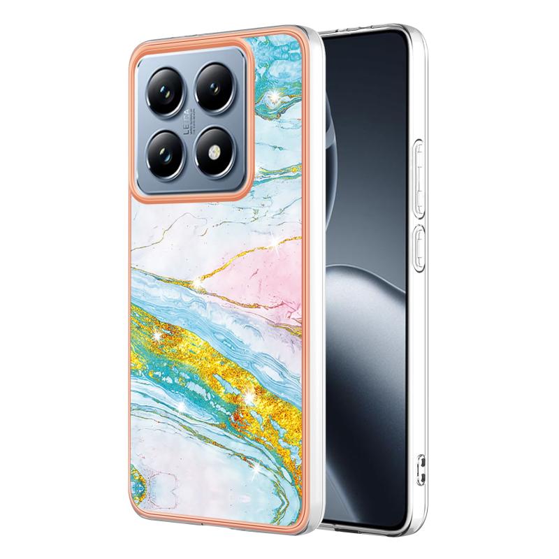 For Xiaomi 14T Pro Electroplating Marble Dual-side IMD Phone Case(Green 004)