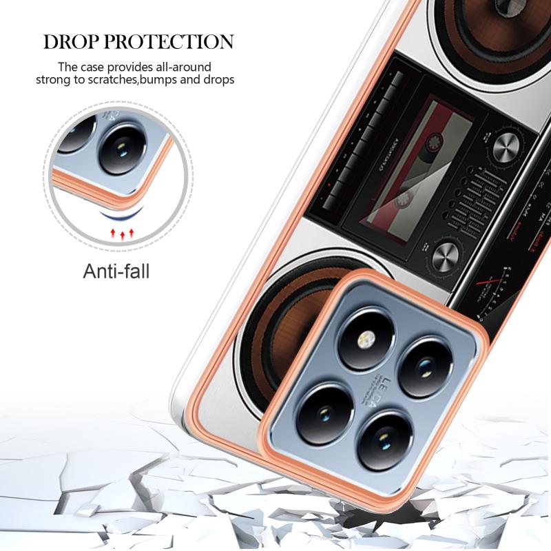 For Xiaomi 14T Pro Electroplating Marble Dual-side IMD Phone Case(Retro Radio)