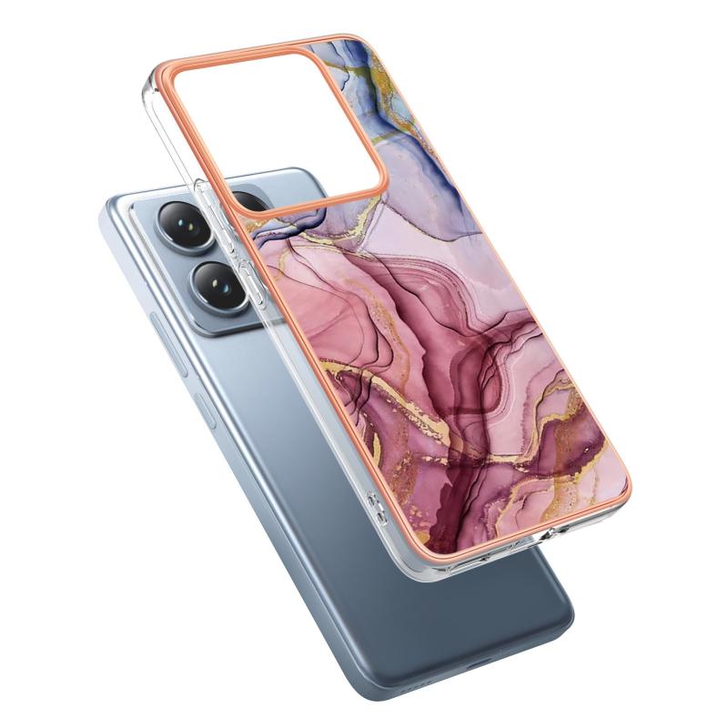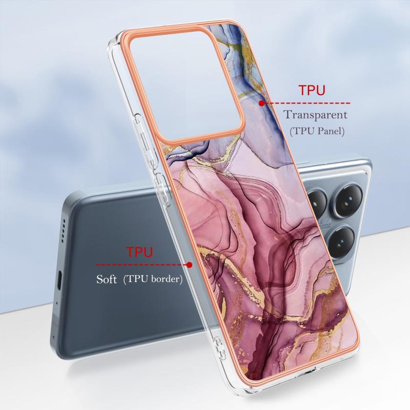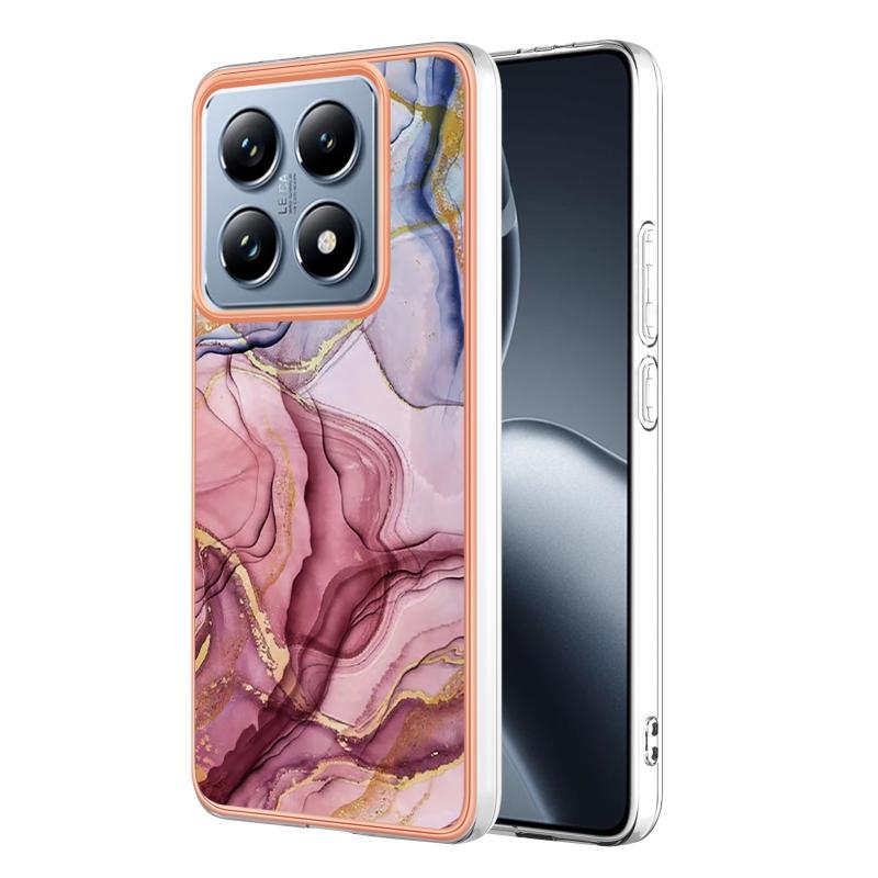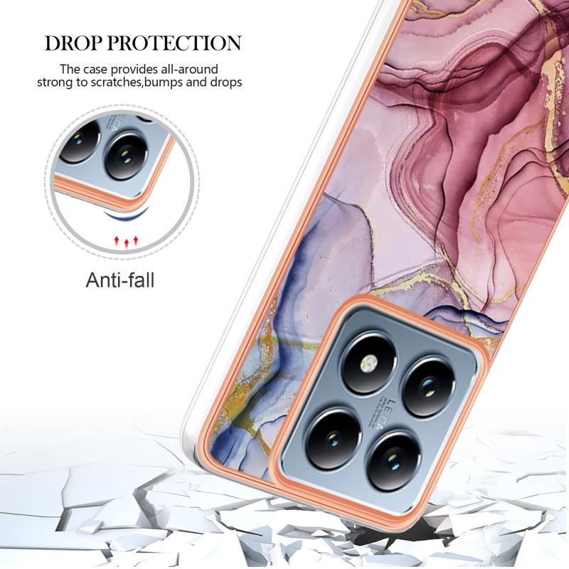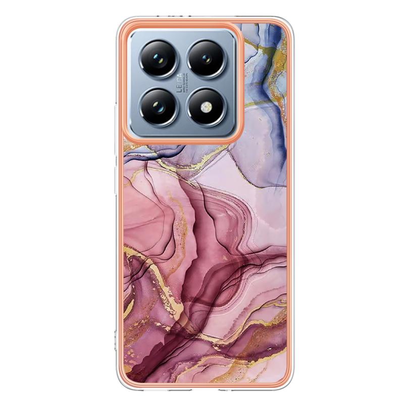 For Xiaomi 14T Pro Electroplating Marble Dual-side IMD Phone Case(Rose Red 014)