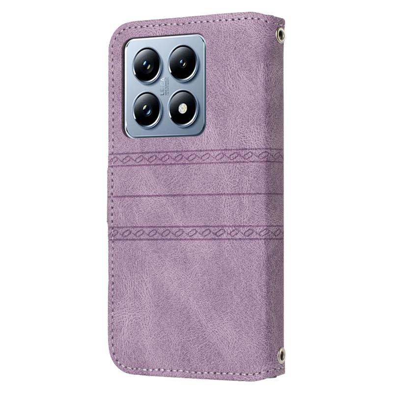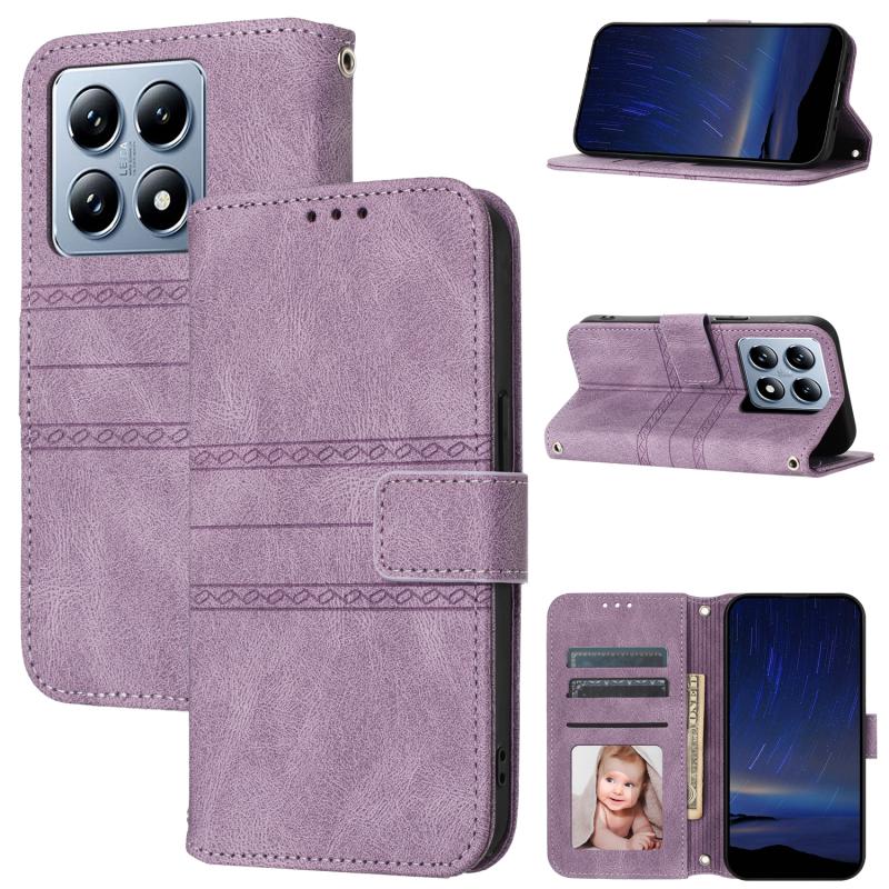 For Xiaomi 14T Pro Embossed Stripes Skin Feel Leather Phone Case(Light Purple)