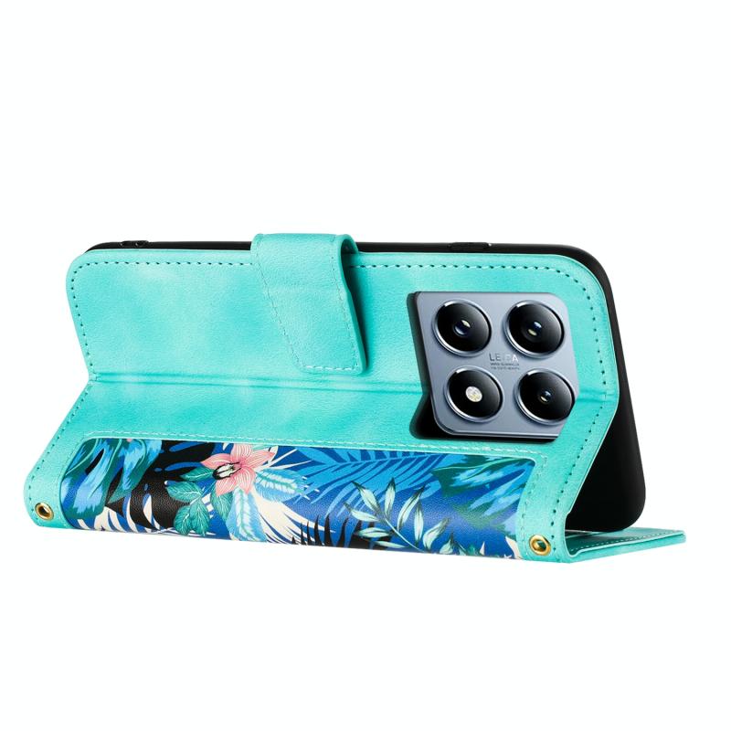 For Xiaomi 14T Pro Floral Pattern Leather Phone Case with Lanyard(Green)