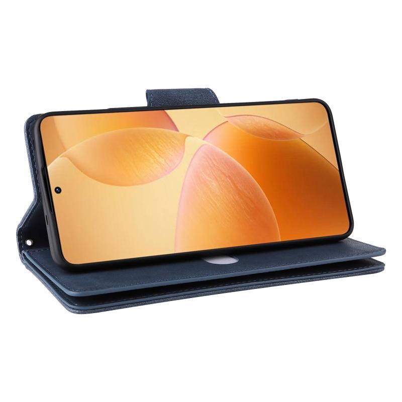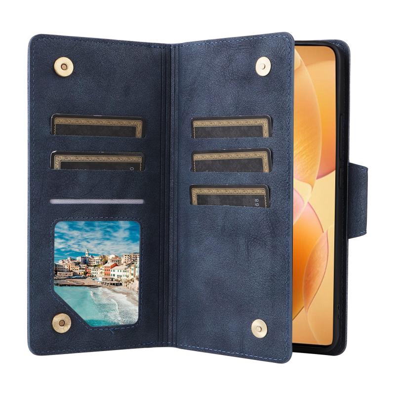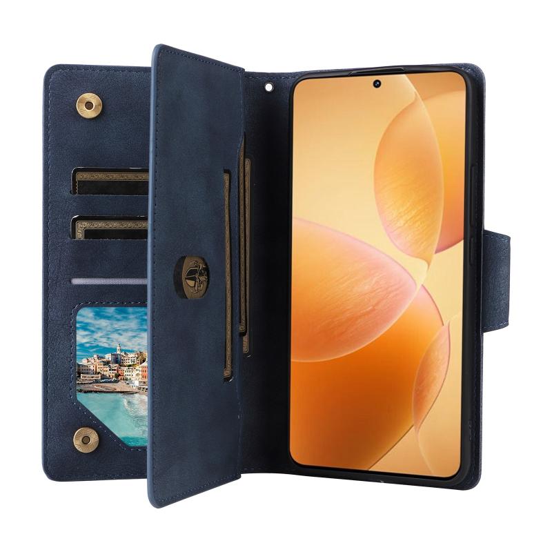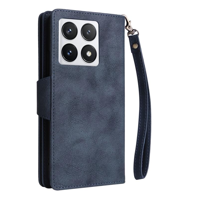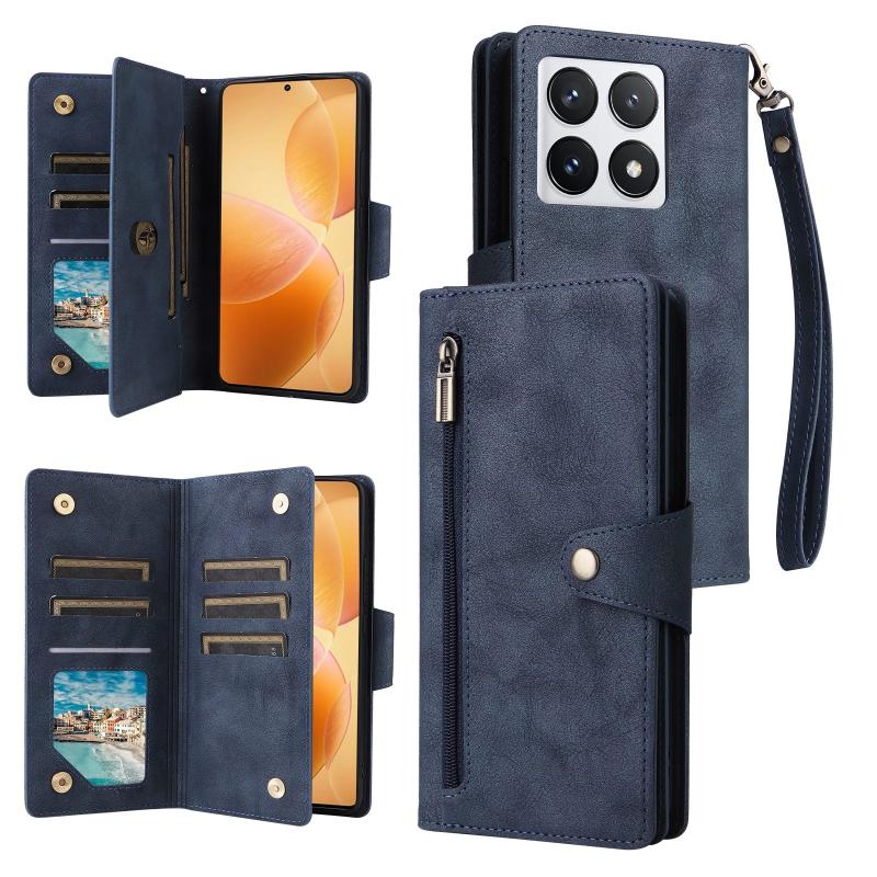 For Xiaomi 14T Pro Global Rivet Buckle 9 Cards Three Fold Leather Phone Case(Blue)
