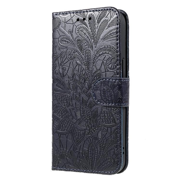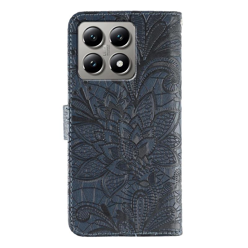 For Xiaomi 14T Pro Lace Flower Embossing Flip Leather Phone Case(Dark Blue)